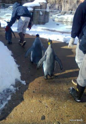 FYI: Every Sunday that's under 50 degrees F outside they take some of the residents from the penguin house out for a breath of fresh air. Check it out. They just happened to be taking them out this Saturday as well! Made our day!